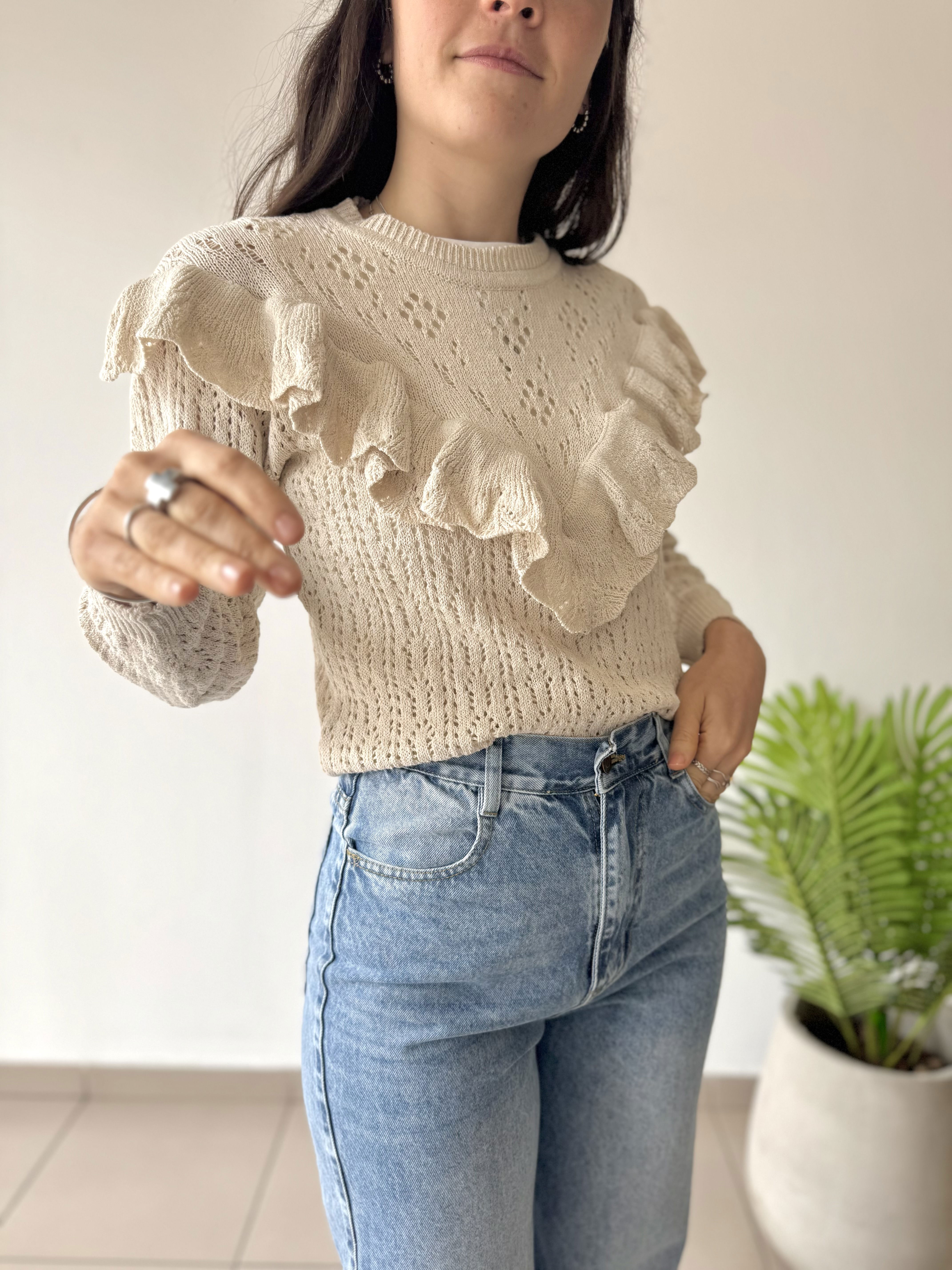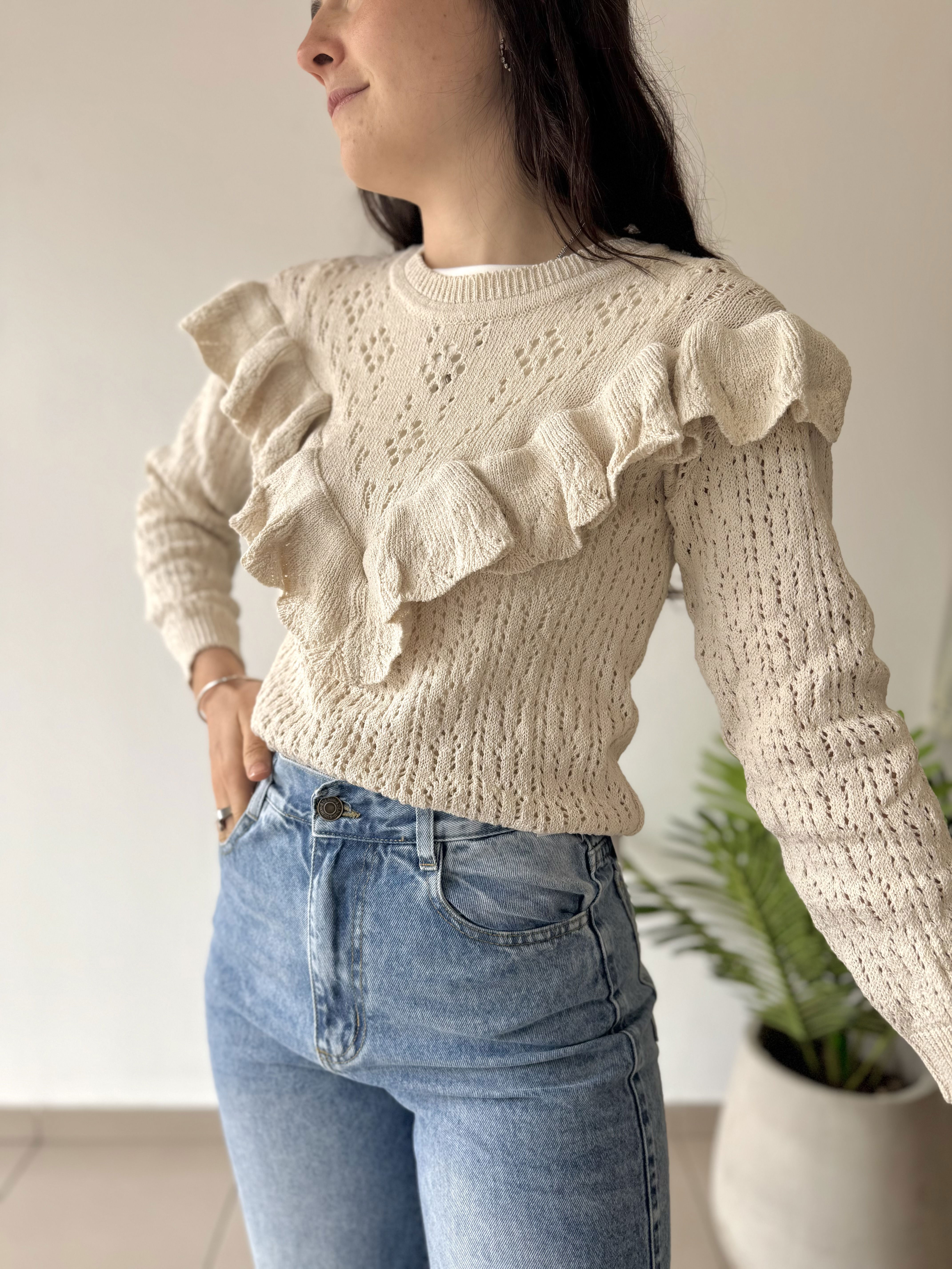 • Sweater de hilo de algodón calado. Es ideal para esta temporada Primavera ~ Verano. Es una prenda protagonista, delicada y versátil.