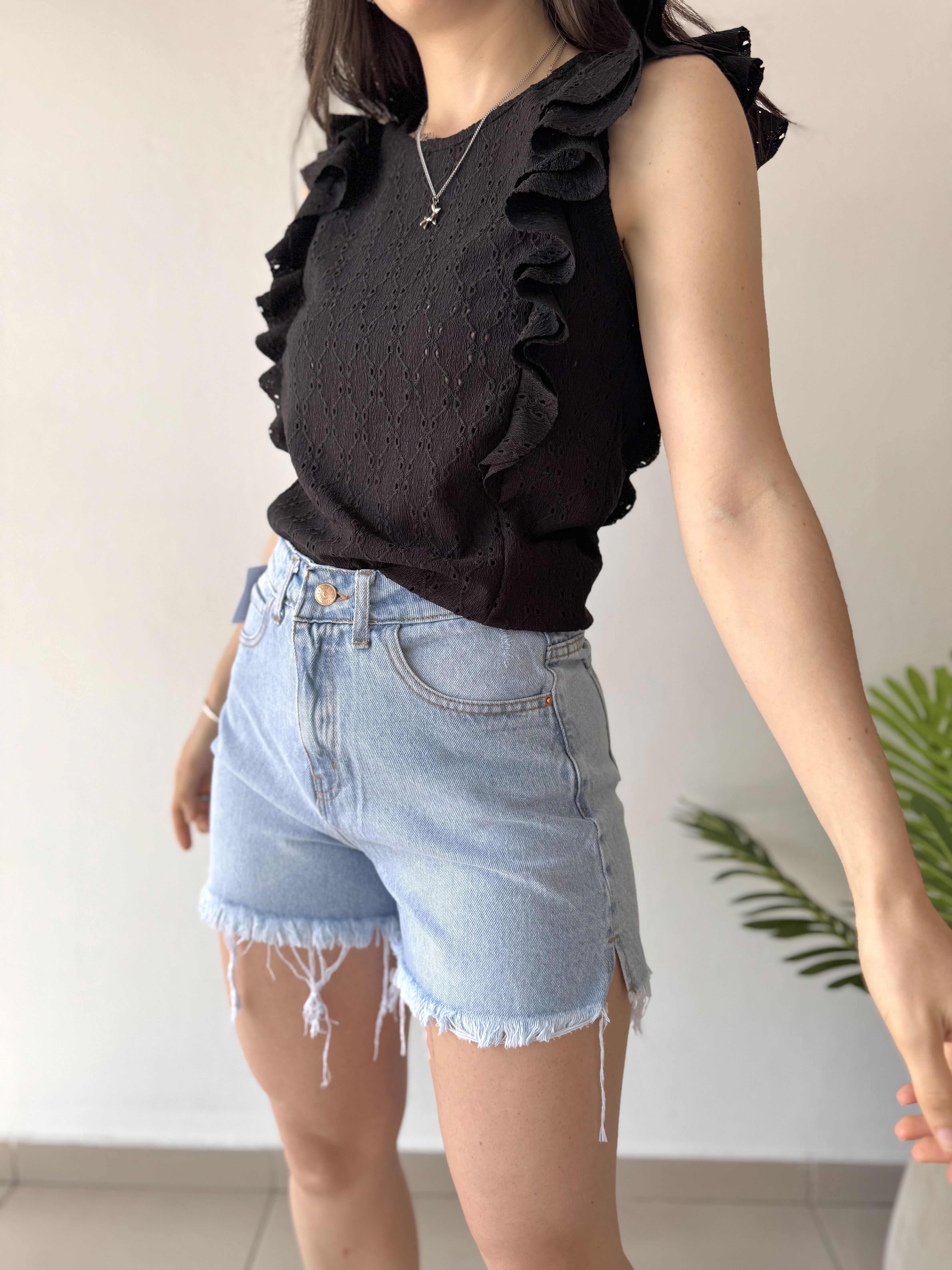 - La modelo luce la prenda en talle L, tené en cuenta que la confección es chica, dejamos referencias.