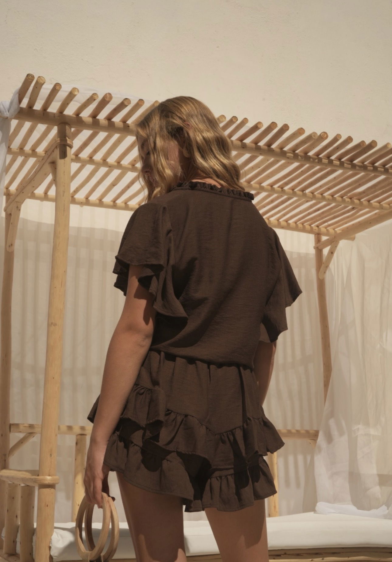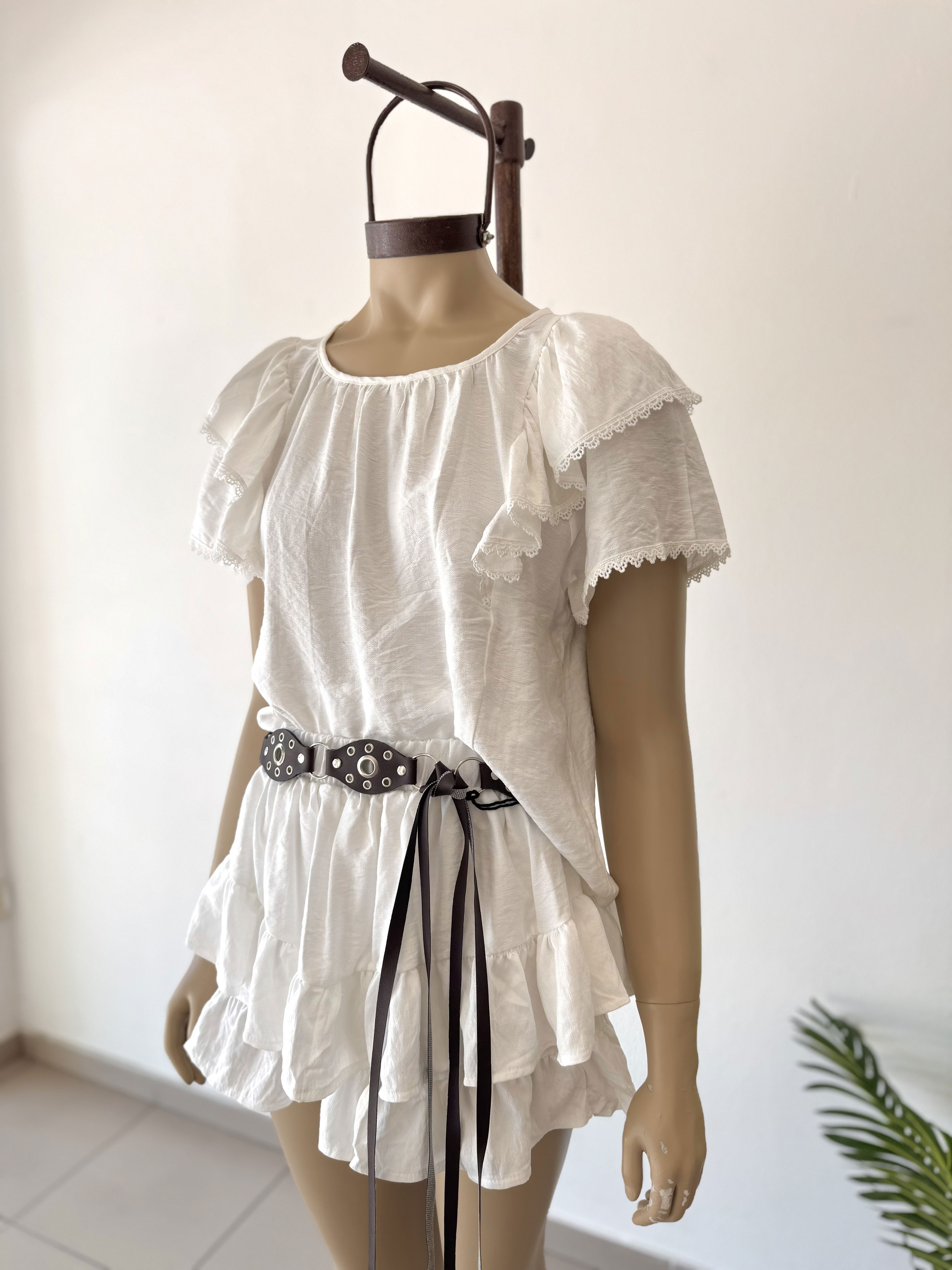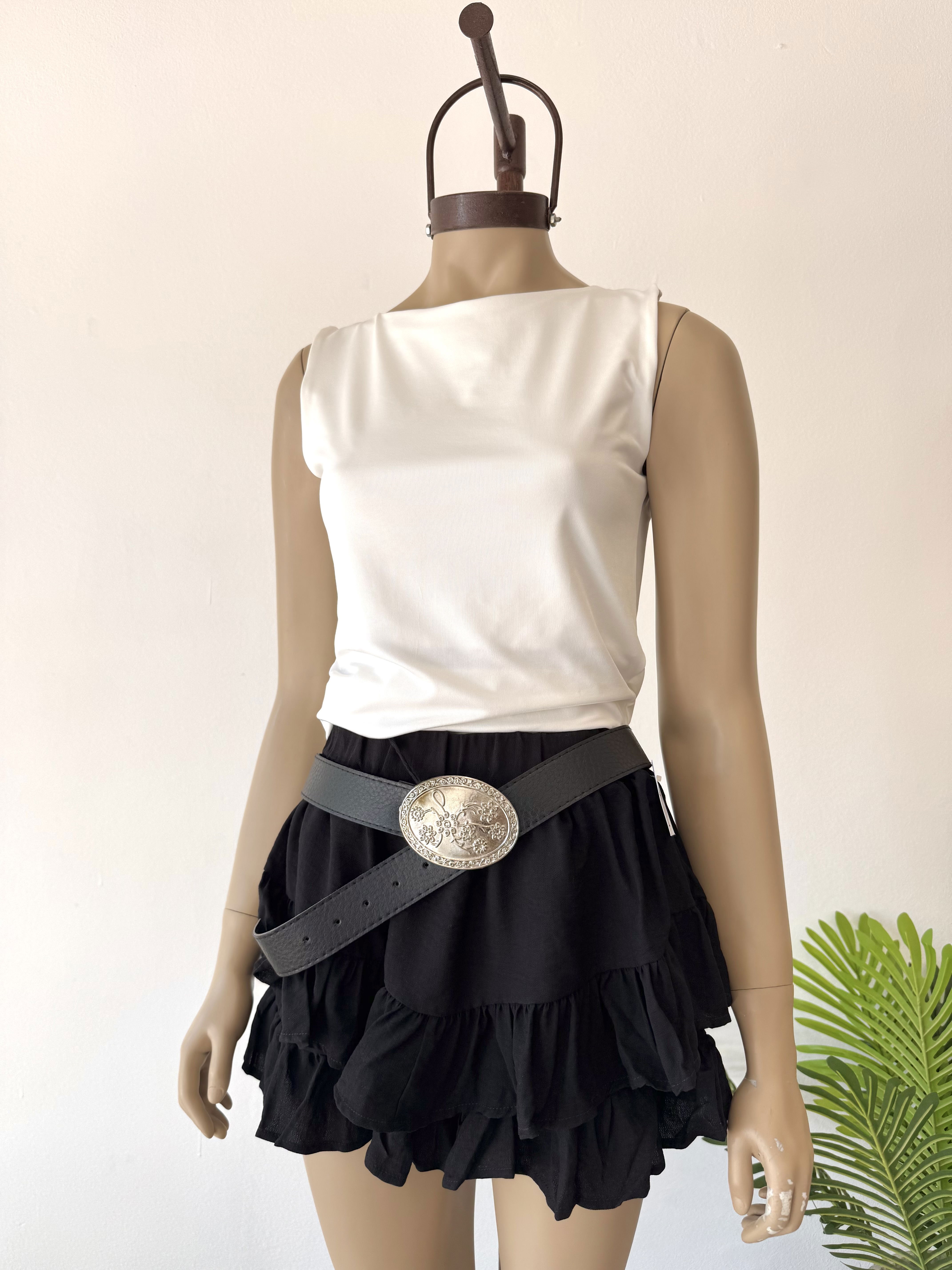 • Skort de lino madrileño (short con falda por arriba). Da la apariencia de tener una falda pero con la comodidad de un pantalón!