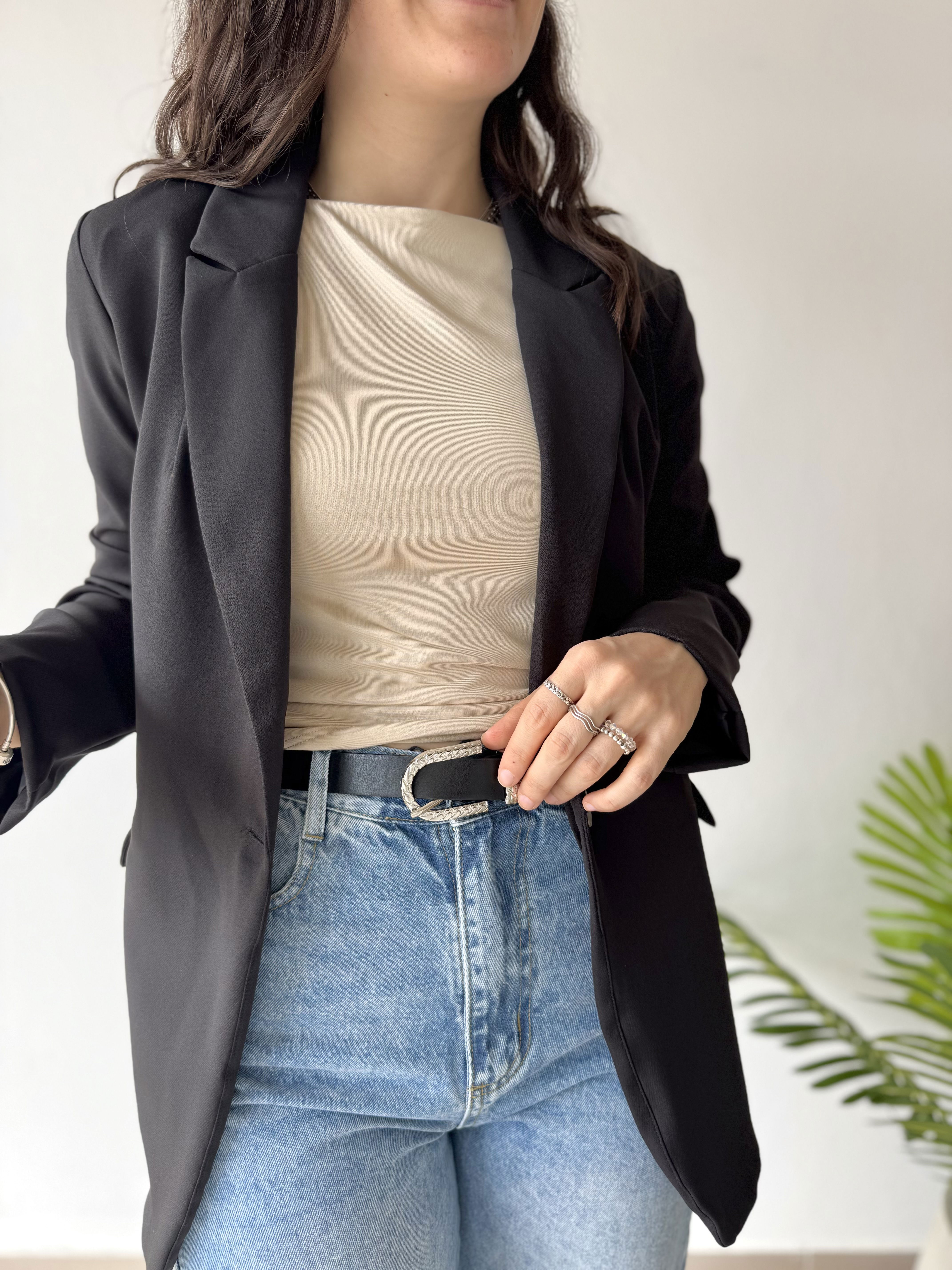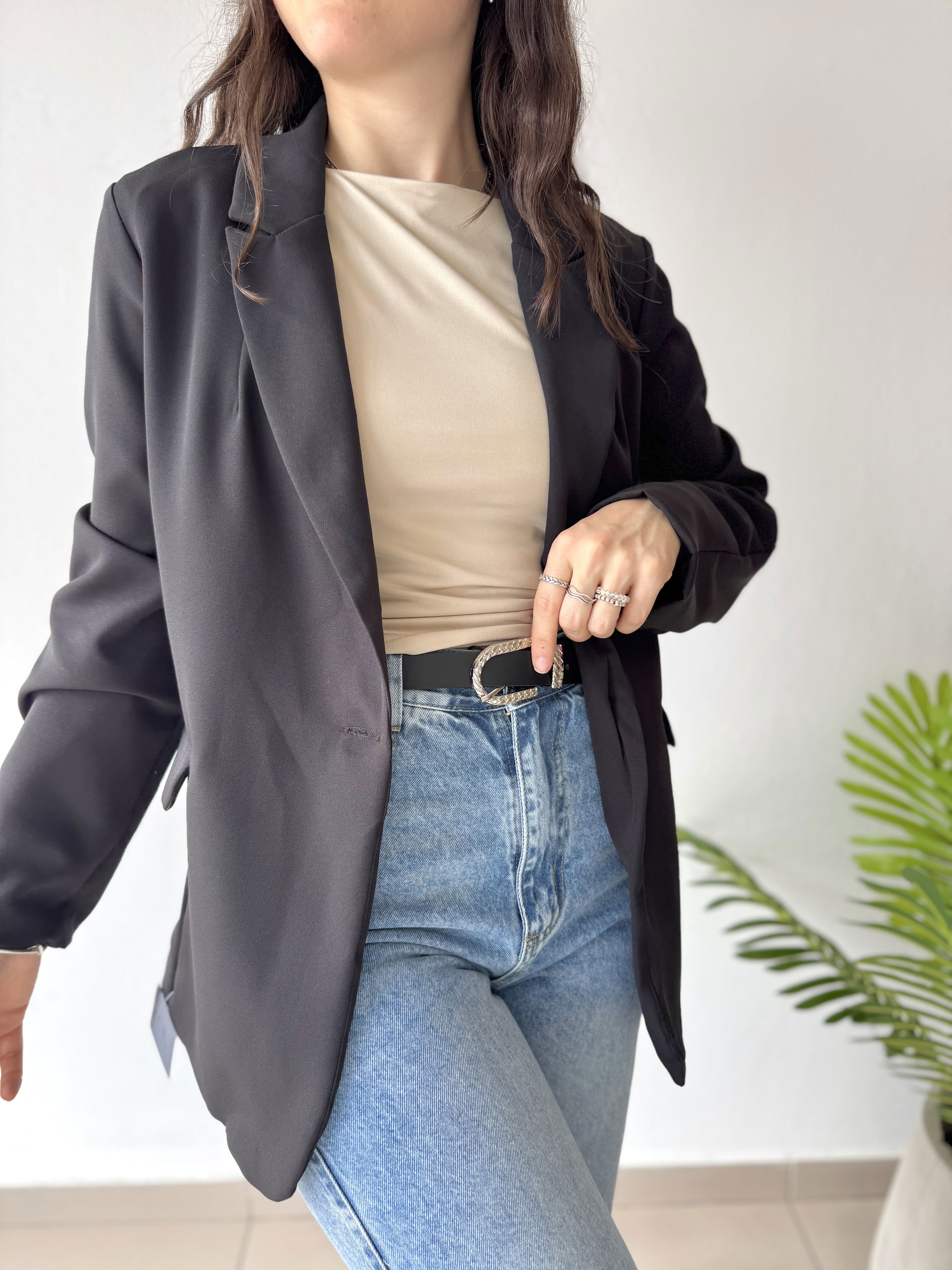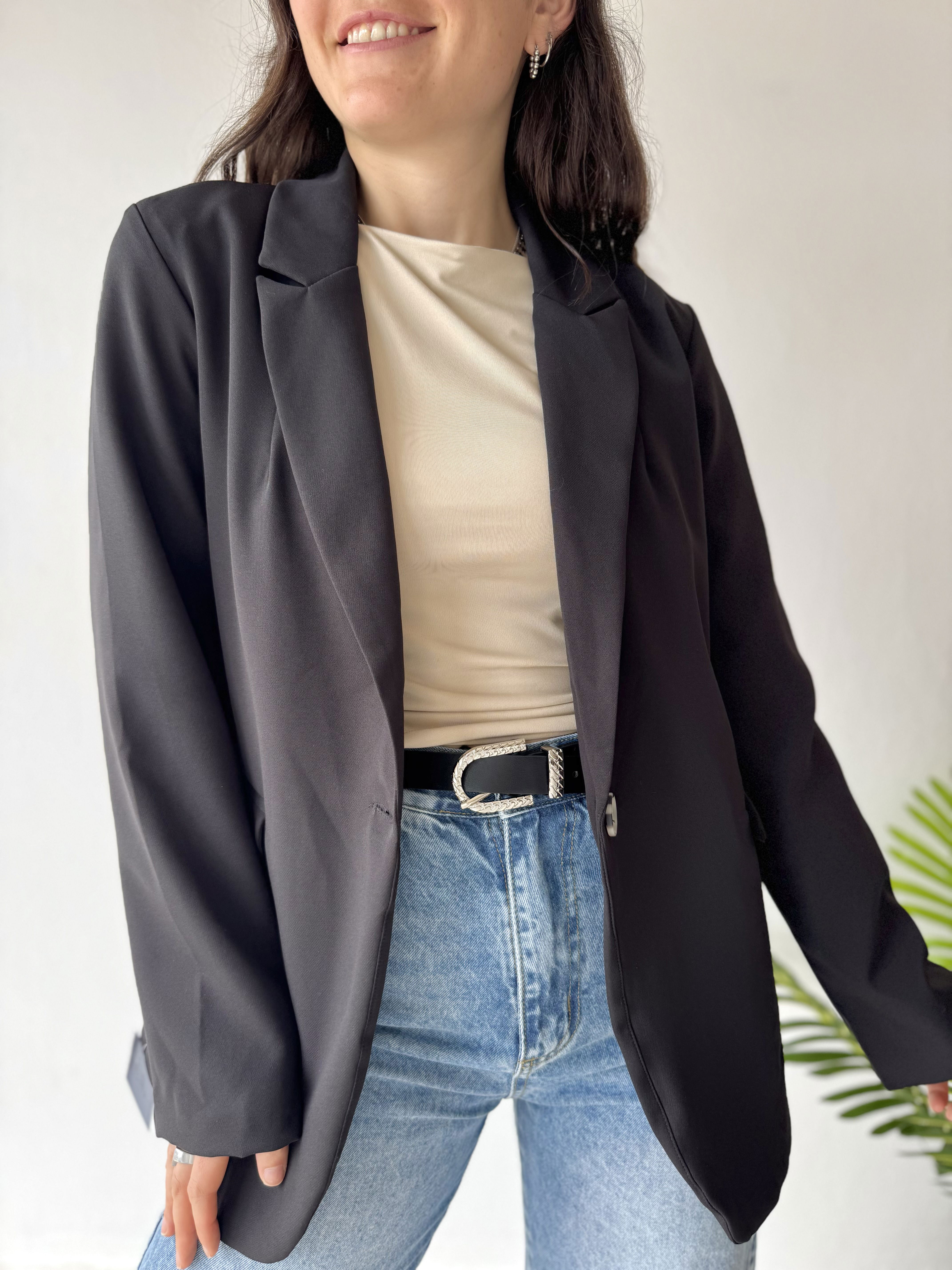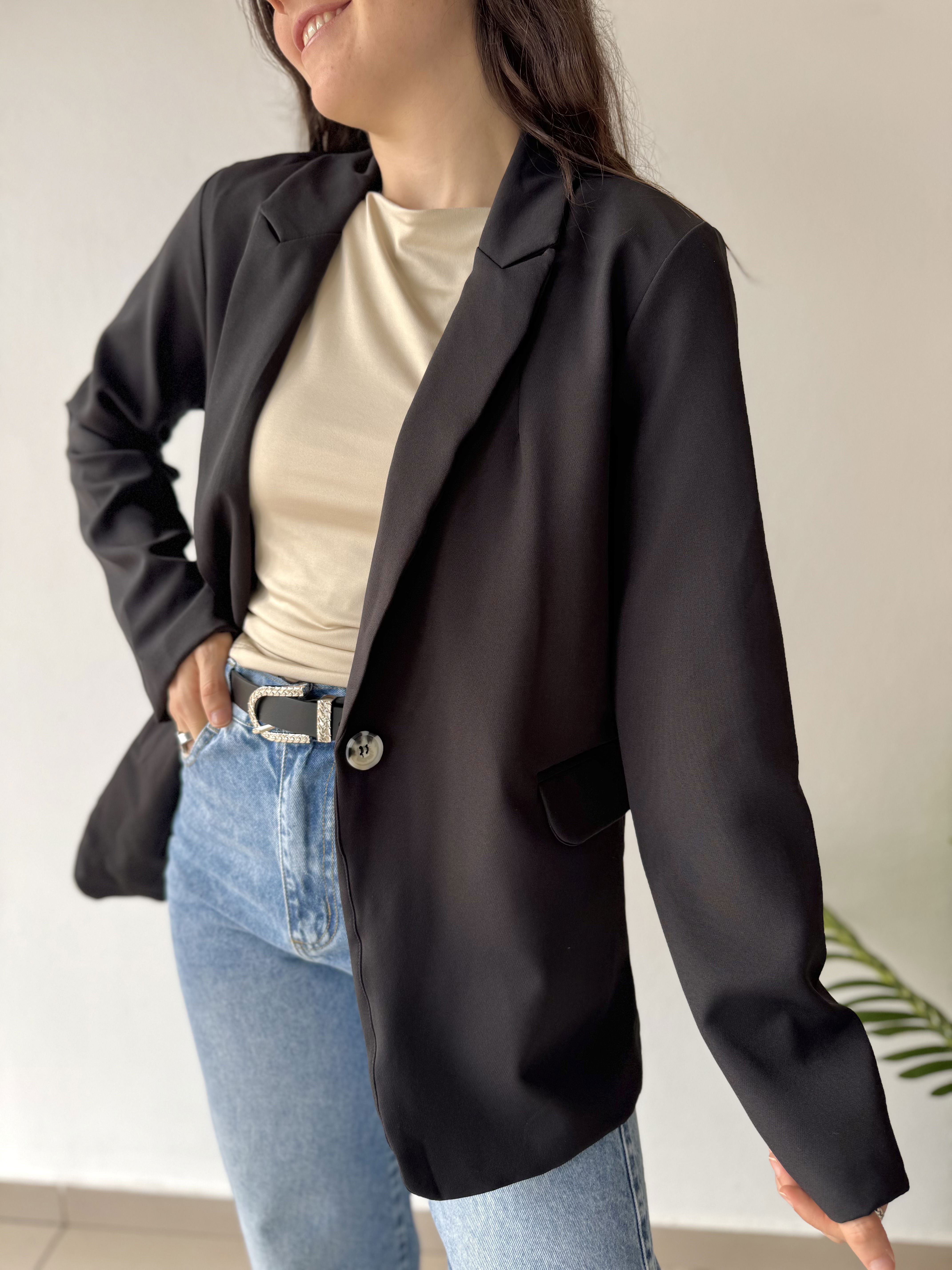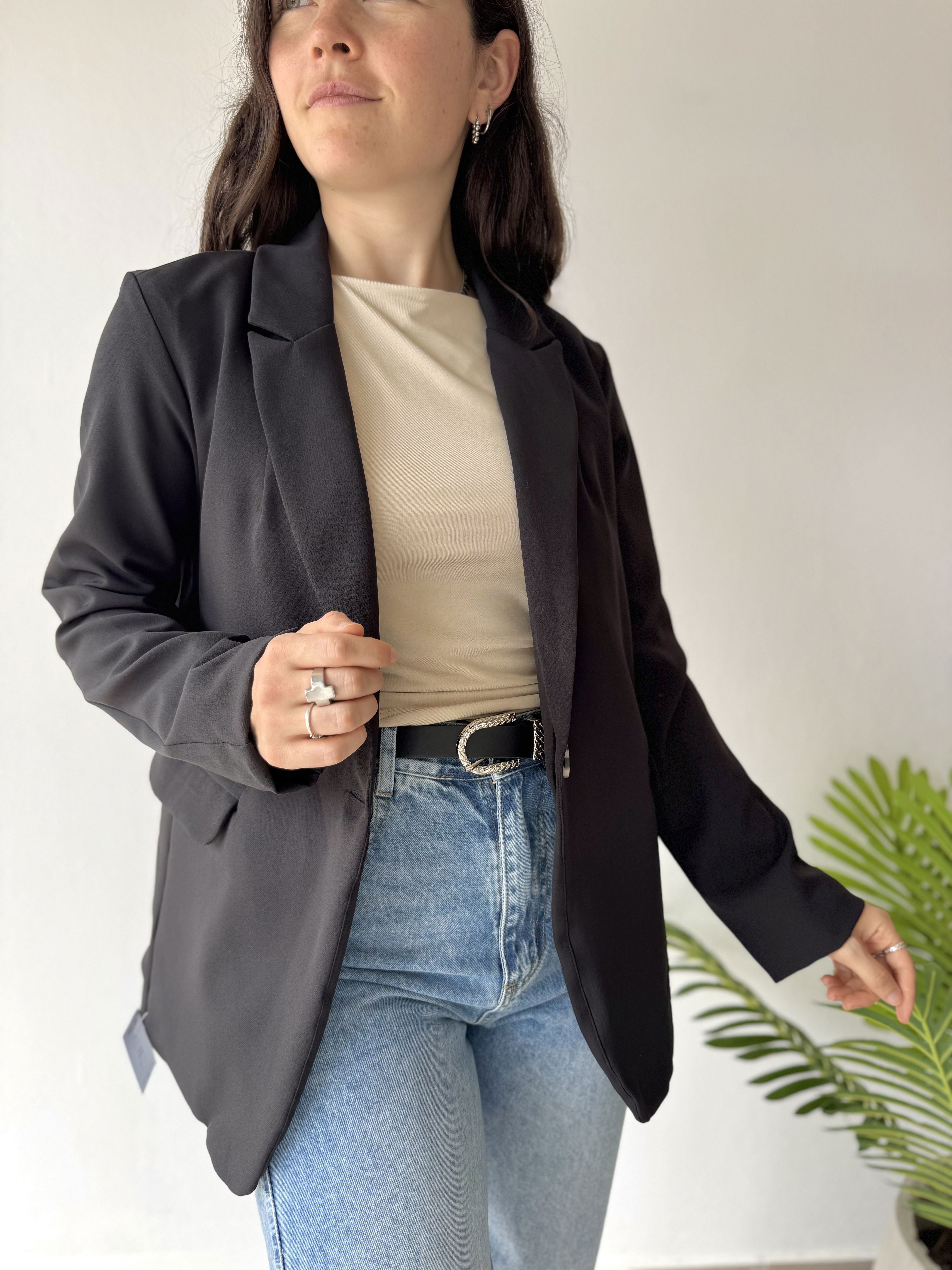 - Blazer de crepe sastrero, forrado, con bolsillos y solapas en los mismos. Este modelo es oversize, se adapta de un talle M a un XL aprox.